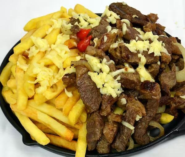 600g de contra filé acebolado + 500g de fritas c/ catupiry.