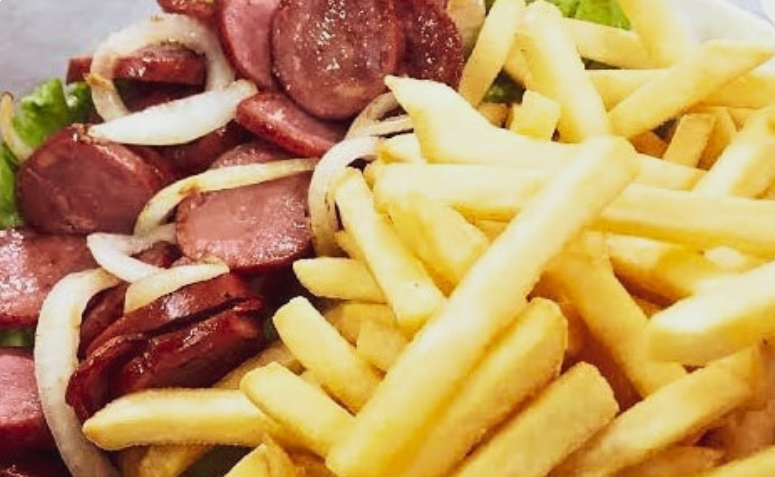 500 gr de calabresa fininha acebolada c/fritas
